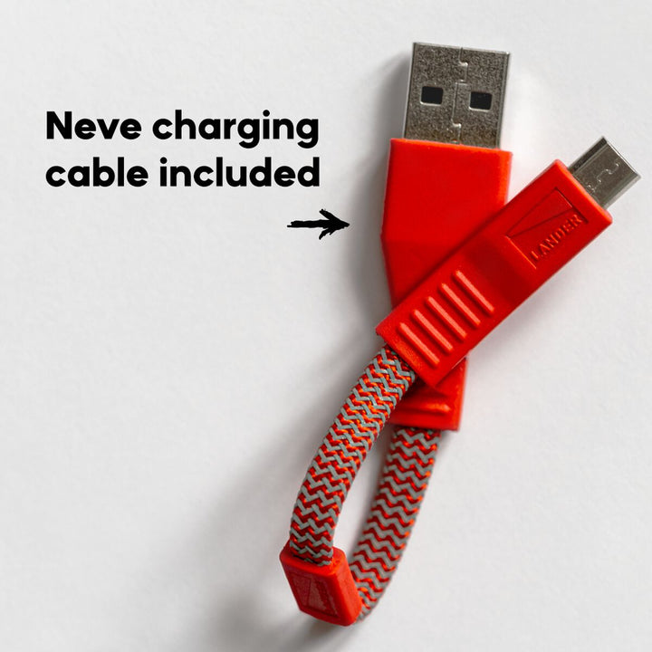 Each Cairn Mini comes with a 6” Neve® cable made with REPREVE® recycled ocean plastics and durable polyester, helping reduce waste while delivering reliability outdoors.