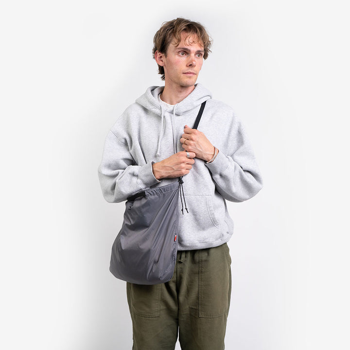 The Packable Bag is designed to disappear into itself—stuffable, stashable, and always ready to deploy when the load gets heavy or things get messy. Built to go unnoticed until it's essential.