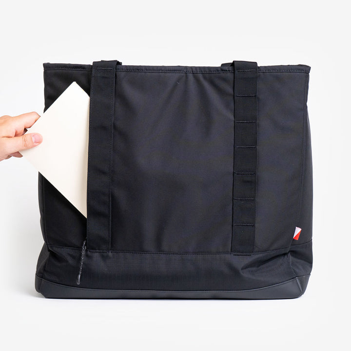 Carries more without the chaos. The Tote swaps zippers and flaps for wide-open access and a low-key silhouette. Inside, it’s dialed for gear, tech and tools; outside, it’s clean enough to go anywhere you do.